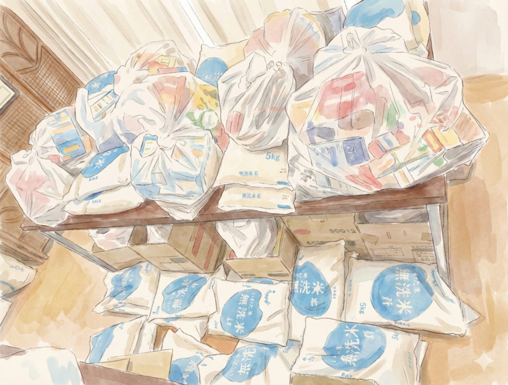 関係各所よりご寄付いただいた物資をみんなで均等に振り分け配布します。