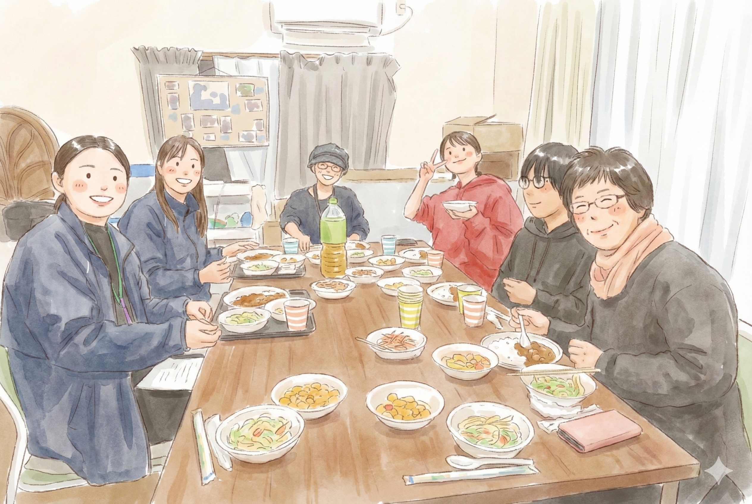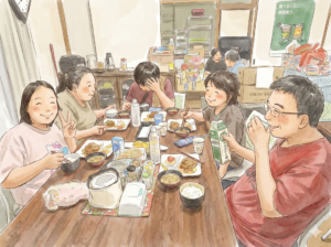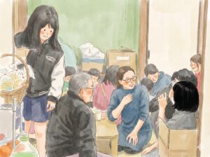 宿題をしたり、絵を描いたり。学校に行けない日も、ここに来れば誰かがいる。 夕飯のお惣菜やお弁当の提供も行い、お腹と心を満たすサポートをしています。